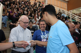 Com as arquibancadas lotadas e muita energia das torcidas, os alunos encerraram uma jornada de partidas marcadas por dedicação, amizade e espírito esportivo. O momento teve um brilho especial com a presença do ex-aluno Pedro Severino, convidado para dar o pontapé inicial das partidas do masculino.
