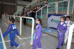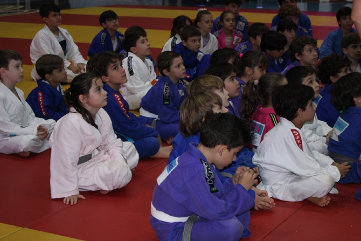 A cerimônia de encerramento do judô envolveu 41 judocas, do Infantil 4 ao 9º ano, sob a condução do Sensei Rogério Quintela e prof. Paulo, com o apoio da assistente de judô Vanessa. O momento foi marcado pela graduação dos alunos.