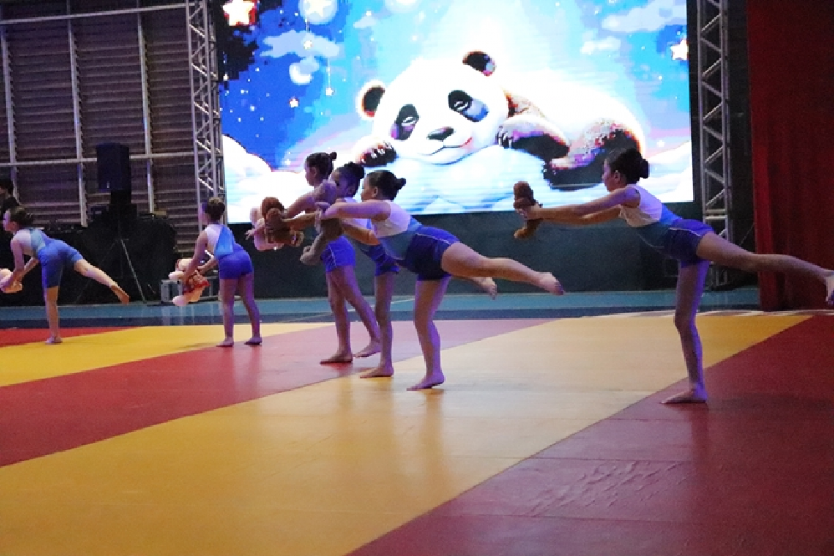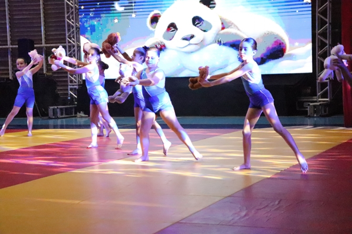 A apresentação de ginástica reuniu 73 alunas, do Infantil 5 ao 7º ano, com o tema “O Reino dos Brinquedos”. As coreografias deram vida a personagens e universos lúdicos, divididos nos grupos Ursinho Pimpão, Boneca Emília, Robôs (jogos eletrônicos), Bailarinas e Super Heroínas. As apresentações foram coordenadas pelas professoras Joice, Natália e Kamily.