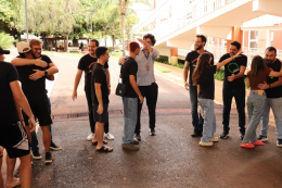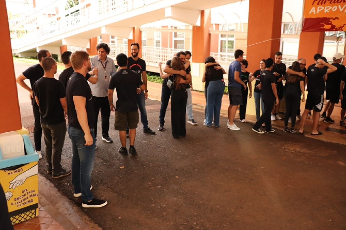 Os estudantes foram recebidos pelos professores em um momento de descontração, com música, coffee e os tradicionais “trotes”, que marcam o encerramento de um ciclo e o início de uma nova etapa acadêmica. Cabelos raspados, rostos e braços pintados, além de um quadro no qual cada aprovado deixou uma marca, fizeram parte da tarde de confraternização e despedida.
