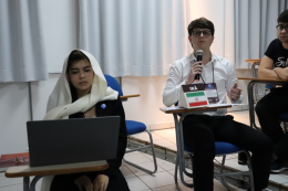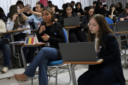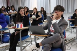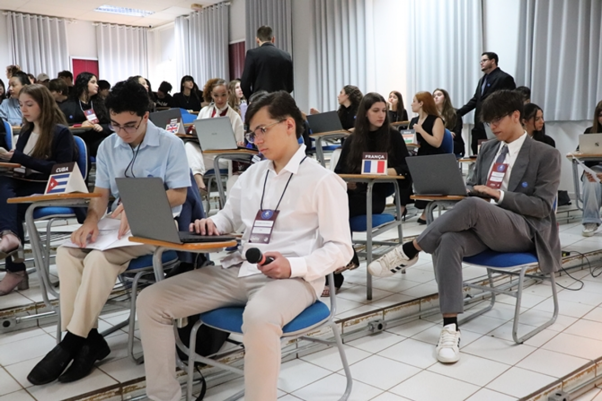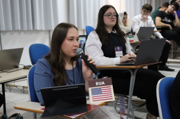 O aluno Caio, da 3ª série, resumiu a experiência. “Este foi o meu terceiro ano participando e posso afirmar que cada edição trouxe vivências únicas e especiais. Nos dois primeiros anos, atuei como delegado, tive a oportunidade de debater questões globais de forma séria, mas também descontraída. Neste ano, tive a honra de participar como mesa da simulação, uma função bastante diferente das anteriores. Gostei muito da experiência, fiquei responsável por conduzir os discursos e organizar as propostas de resolução, garantindo andamento dos debates”, comentou.