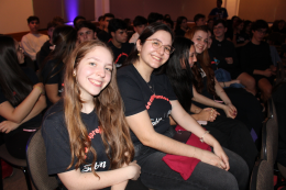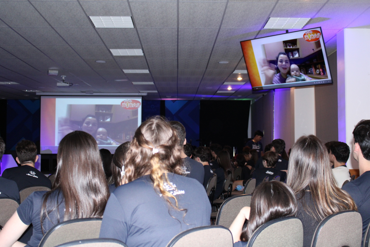 O momento também foi marcado pela exibição de mensagens de apoio enviadas por ex-alunos, professores e amigos do Sabin, desejando boa sorte aos candidatos.