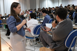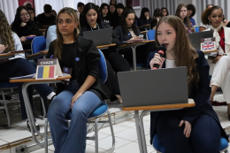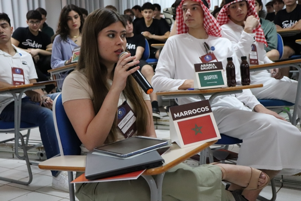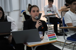 O aluno Caio, da 3ª série, resumiu a experiência. “Este foi o meu terceiro ano participando e posso afirmar que cada edição trouxe vivências únicas e especiais. Nos dois primeiros anos, atuei como delegado, tive a oportunidade de debater questões globais de forma séria, mas também descontraída. Neste ano, tive a honra de participar como mesa da simulação, uma função bastante diferente das anteriores. Gostei muito da experiência, fiquei responsável por conduzir os discursos e organizar as propostas de resolução, garantindo andamento dos debates”, comentou.