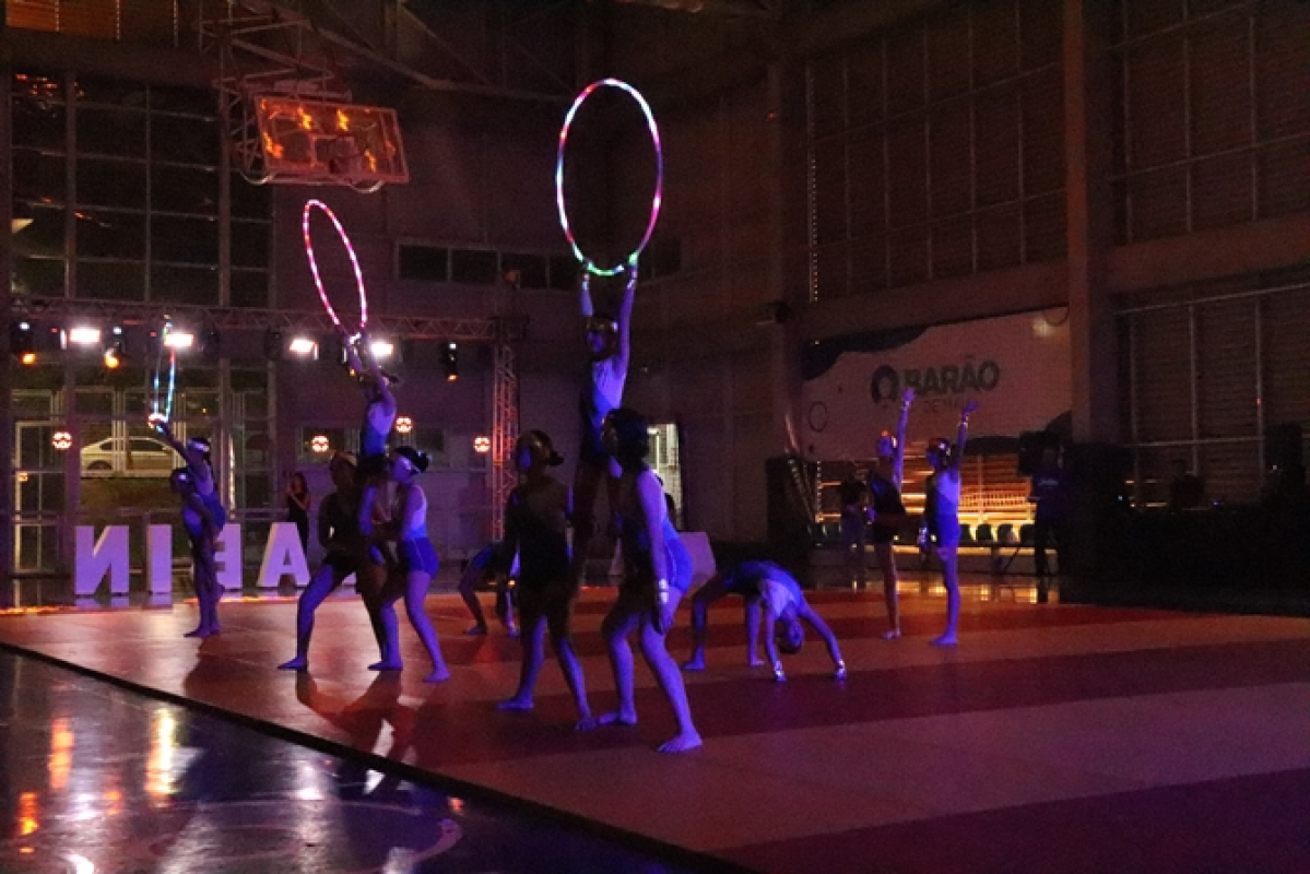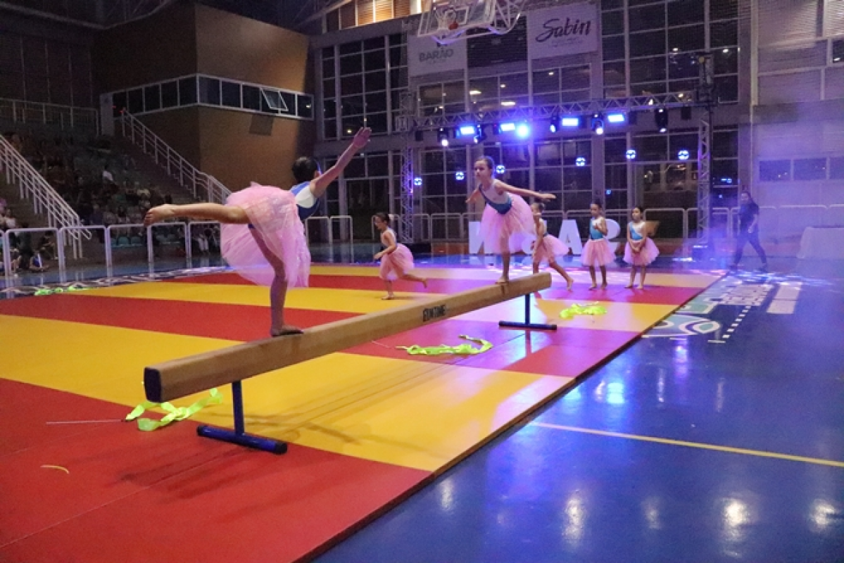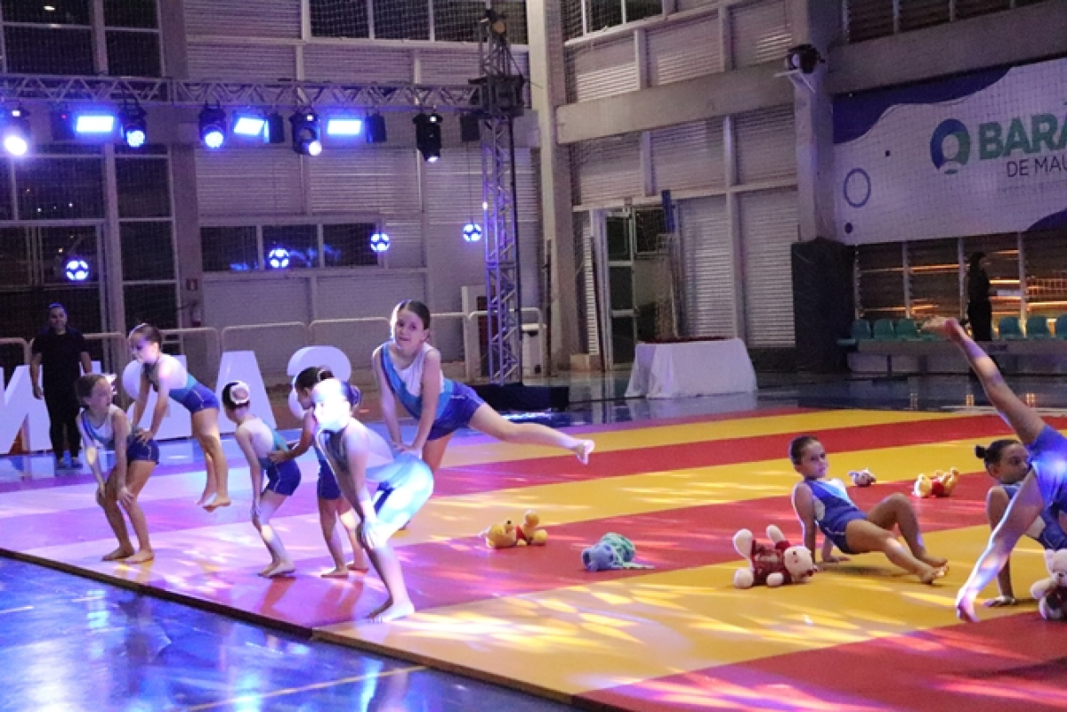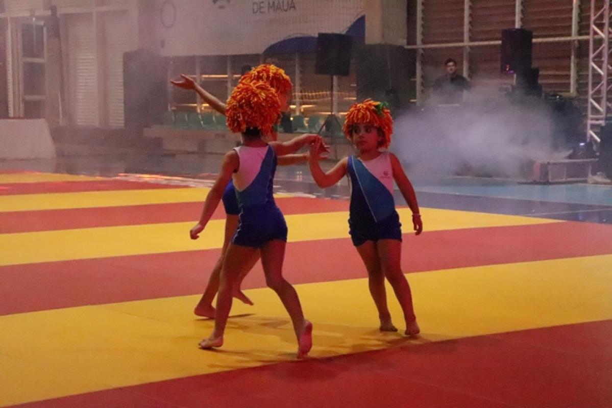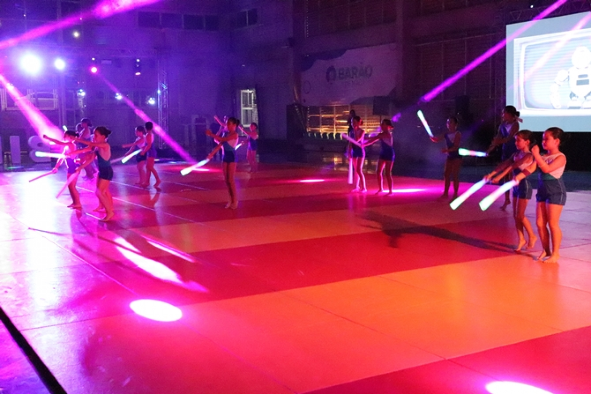 A apresentação de ginástica reuniu 73 alunas, do Infantil 5 ao 7º ano, com o tema “O Reino dos Brinquedos”. As coreografias deram vida a personagens e universos lúdicos, divididos nos grupos Ursinho Pimpão, Boneca Emília, Robôs (jogos eletrônicos), Bailarinas e Super Heroínas. As apresentações foram coordenadas pelas professoras Joice, Natália e Kamily.