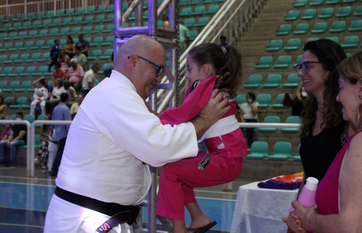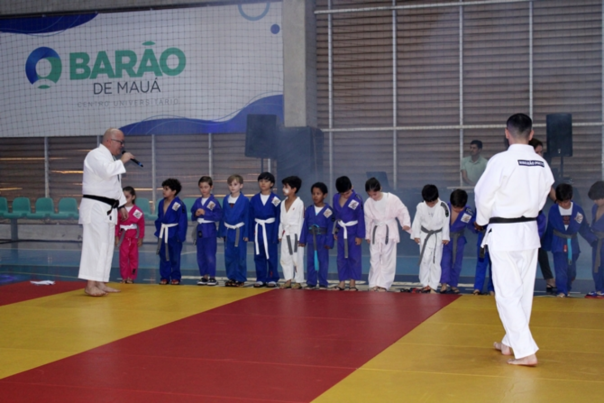 A cerimônia de encerramento do judô envolveu 41 judocas, do Infantil 4 ao 9º ano, sob a condução do Sensei Rogério Quintela e prof. Paulo, com o apoio da assistente de judô Vanessa. O momento foi marcado pela graduação dos alunos.