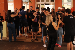 Os estudantes foram recebidos pelos professores em um momento de descontração, com música, coffee e os tradicionais “trotes”, que marcam o encerramento de um ciclo e o início de uma nova etapa acadêmica. Cabelos raspados, rostos e braços pintados, além de um quadro no qual cada aprovado deixou uma marca, fizeram parte da tarde de confraternização e despedida.