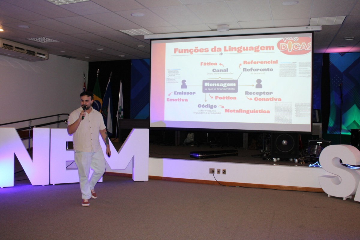Os principais temas do ENEM foram apresentados de forma leve, com foco em tranquilizar os estudantes e oferecer dicas práticas para o desempenho no exame. A mediação ficou por conta do coordenador de série, Guilherme Eusébio, que conduziu a interação entre os professores e os participantes.