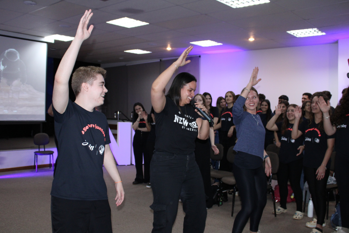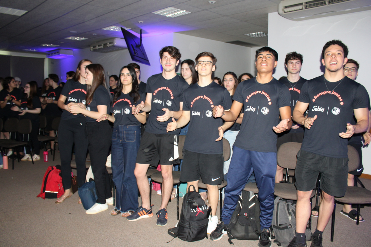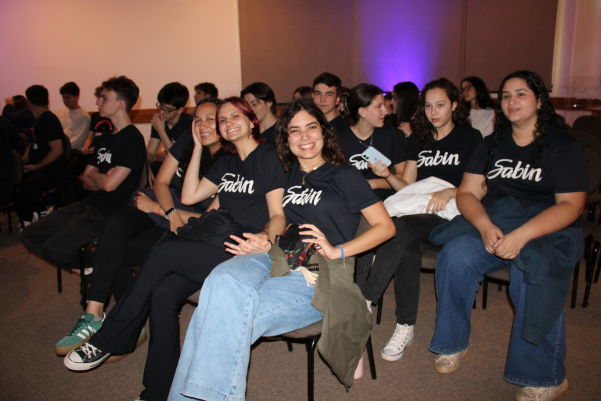O momento também foi marcado pela exibição de mensagens de apoio enviadas por ex-alunos, professores e amigos do Sabin, desejando boa sorte aos candidatos.